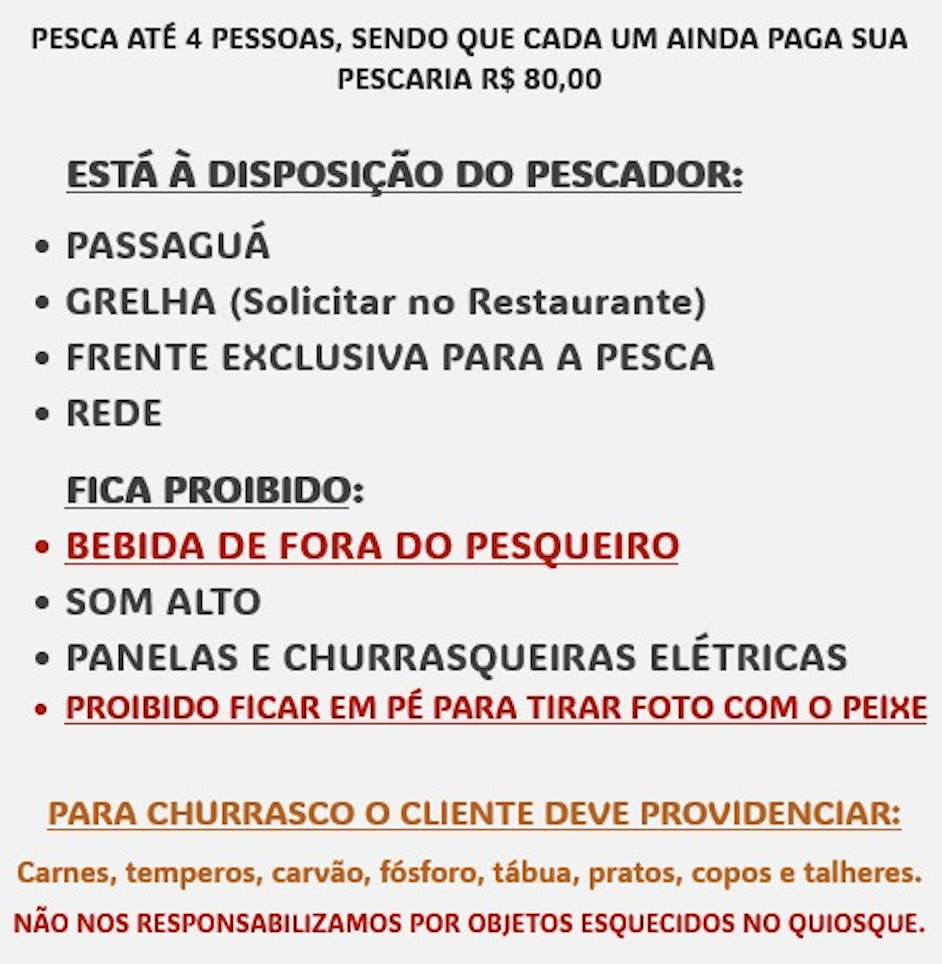 Não incluso valor da pescaria.